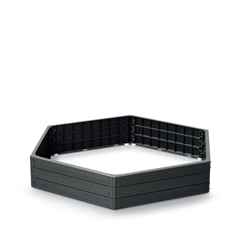Base Woody Hatszögletű Magaságyás Antracit 148 cm, 4db-os csomag