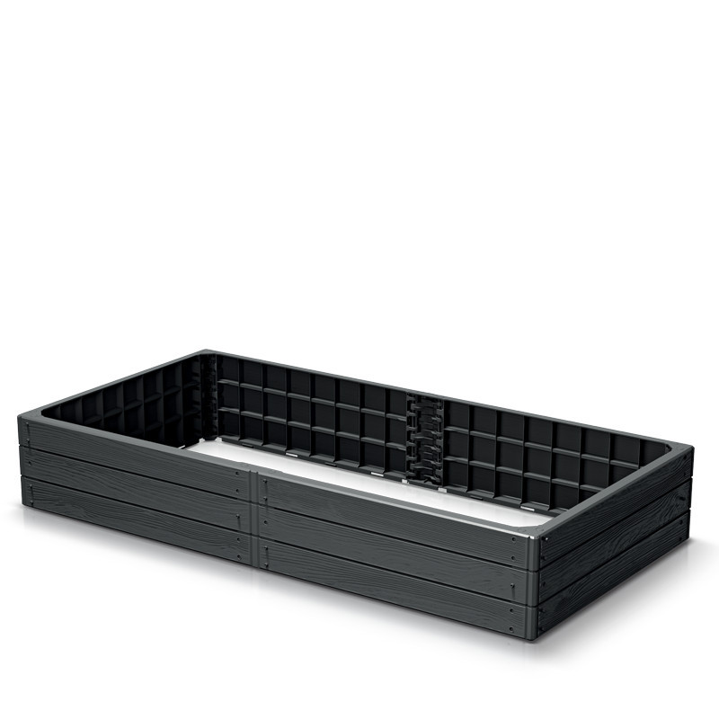 A Base Woody magaságyás ötvözi a modern dizájnt a praktikussággal. A fahatású felülettel rendelkező, antracit színű ágyás tökéletesen illeszkedik bármilyen kerti környezetbe. Tartós, UV-álló műanyagból készült, amely ellenáll az időjárás viszontagságainak és a mechanikai sérüléseknek.