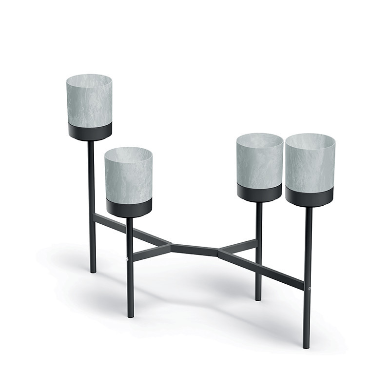 A Bloomie Stand virágtartó állvány tökéletes választás a modern otthonokba és irodaterekbe. A matt fekete fémvázra épített konstrukció két különböző magasságban (43 és 58 cm) teszi lehetővé négy növény elhelyezését, ami különösen előnyös a függő növények esetében.
