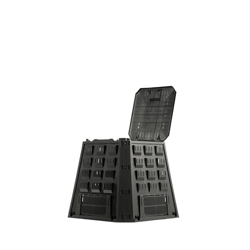 A fekete szín elősegíti a nap melegének elnyelését, így gyorsítva a komposztálódást, míg a nagy űrtartalom lehetővé teszi nagyobb mennyiségű zöldhulladék feldolgozását is. A praktikus kialakítás megkönnyíti mind a hulladék behelyezését, mind az érett komposzt kivételét.