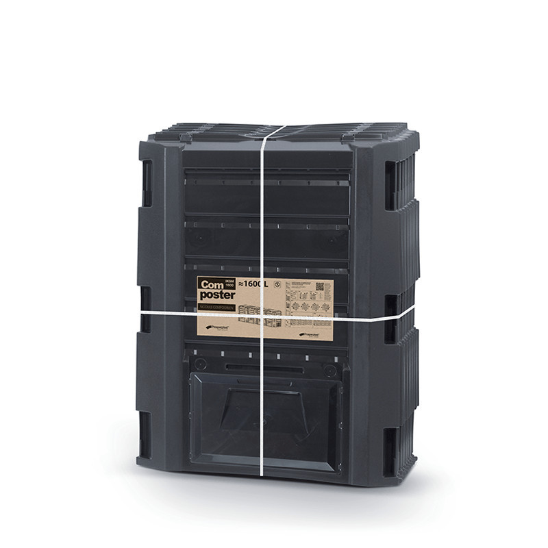 A fekete színű, UV-álló műanyagból készült komposztáló praktikus felnyitható tetővel és oldalajtókkal rendelkezik, amelyek megkönnyítik a hulladék betöltését és a kész komposzt kivételét. A stabil szerkezet és az átgondolt dizájn hosszú évekig tartó használatot biztosít.