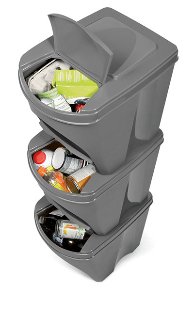 Sortibox 3 Darabos Szelektív Hulladékgyűjtő Rendszer Szett 3x25l Lapos Szürke