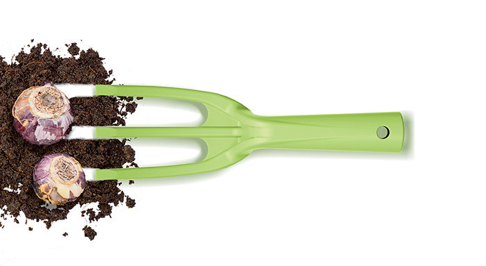 Praktikus, háromágú kerti kultivátor a talaj hatékony lazításához és a gyomok eltávolításához. Ergonomikus kialakítású, tartós műanyag szerszám.