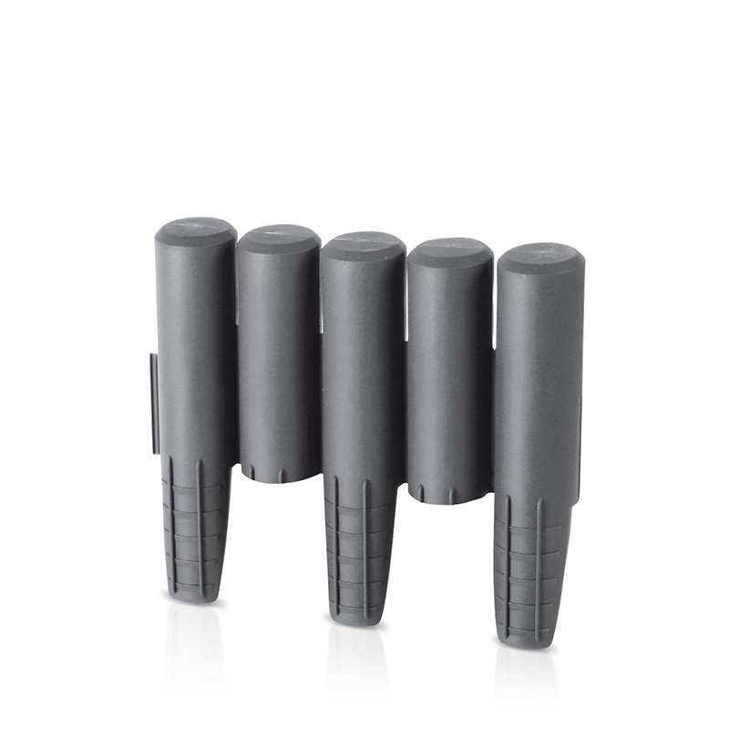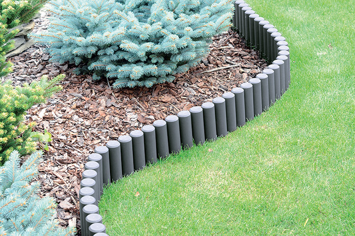 Praktikus műanyag kerti szegély egyenetlen talajhoz és magasított ágyásokhoz, szabadalmaztatott tüskés rögzítőrendszerrel.