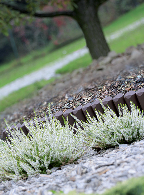 Dekoratív műanyag kerti szegély, amely tökéletes megoldást nyújt virágágyások és gyepfelületek elválasztására 2,5 méteres hosszúságban.