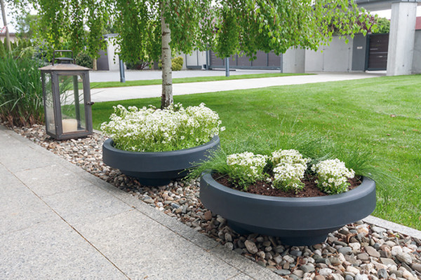Kiválóan alkalmas évelők, pozsgások vagy szezonális virágok ültetésére. Nagy átmérője lehetővé teszi látványos növénykomponálások kialakítását, miközben alacsony profilja nem zavarja a kerti összképet.