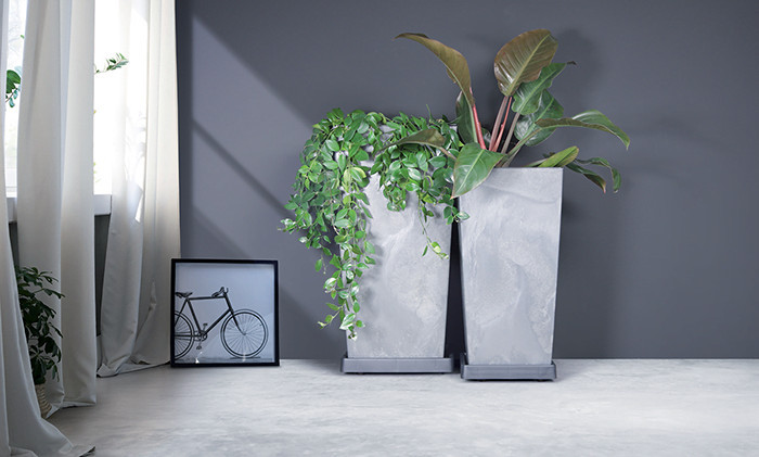 Praktikus, görgős virágtartó alátét, amely lehetővé teszi a nagyméretű növények könnyű mozgatását. Strapabíró antracit színű kivitelben, modern négyzetes formával.