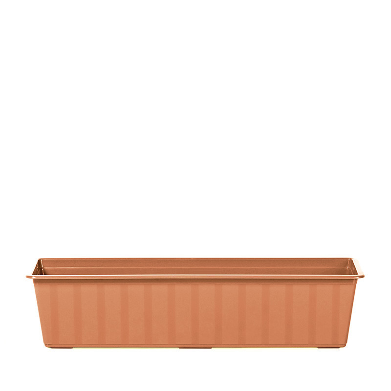 Strapabíró, 60 cm-es terrakotta színű balkonláda virágok, fűszernövények és zöldségek termesztéséhez, praktikus bordázott kialakítással.