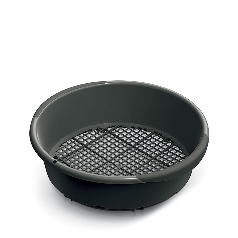 A 10 mm-es fix rácsméretű szitaháló biztosítja a megfelelő szűrést, míg a mély perem megakadályozza a talaj kiszóródását. Ergonomikus kialakításának köszönhetően könnyen kezelhető és tisztítható.