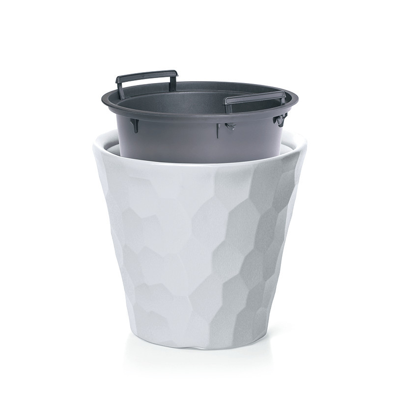 Ez a modern virágtartó betét forradalmasítja a növénygondozást beépített önöntöző rendszerével. A 32,5 cm átmérőjű tartály ideális méretű a legtöbb szobanövény és kerti növény számára, míg a 11 literes űrtartalom bőséges helyet biztosít a gyökerek fejlődéséhez.
