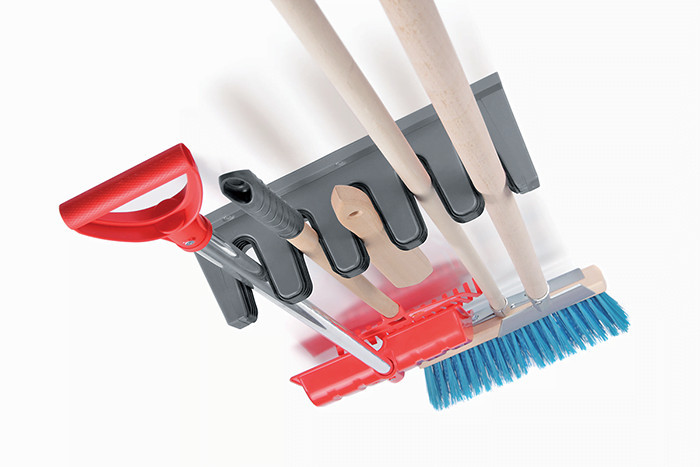 A speciálisan kialakított tartófülek biztonságosan megtartják a szerszámokat, miközben a kompakt kialakítás minimális helyet foglal a falon. Az időjárásálló anyagból készült tartó garázs, műhely vagy kerti tárolóhelyiség falára egyaránt felszerelhető.