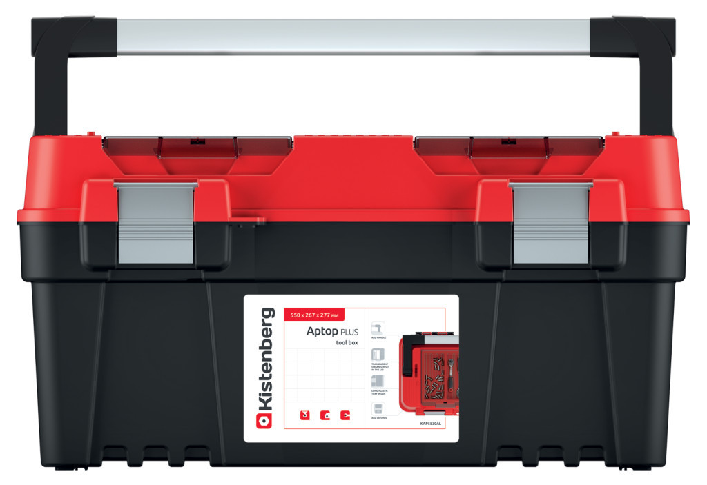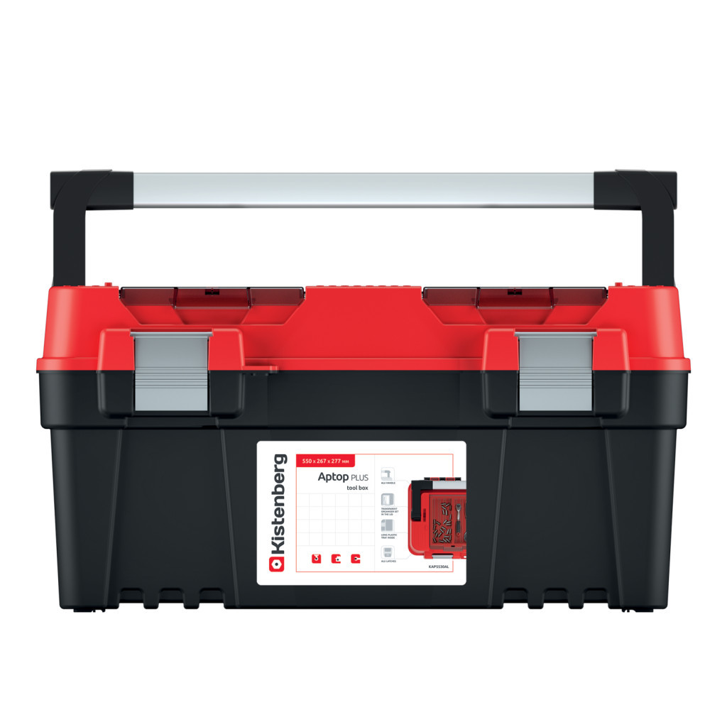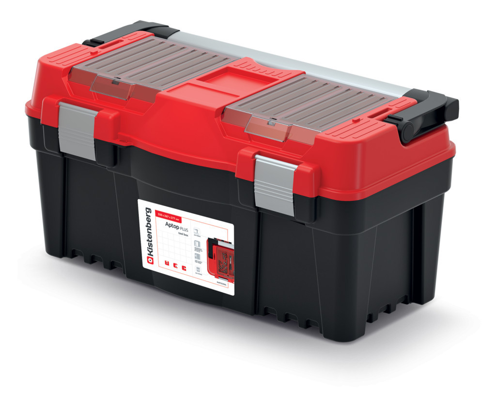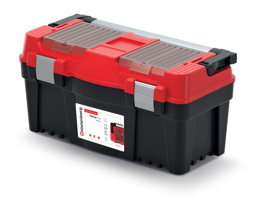 Az Aptop Plus 55 szerszámosláda a professzionális szerszámtárolás új szintjét képviseli. A fedélben található két átlátszó polikarbonát rendszerező tökéletes rálátást biztosít a kisebb alkatrészekre, míg a hosszú alumínium fogantyú kényelmes szállítást tesz lehetővé.