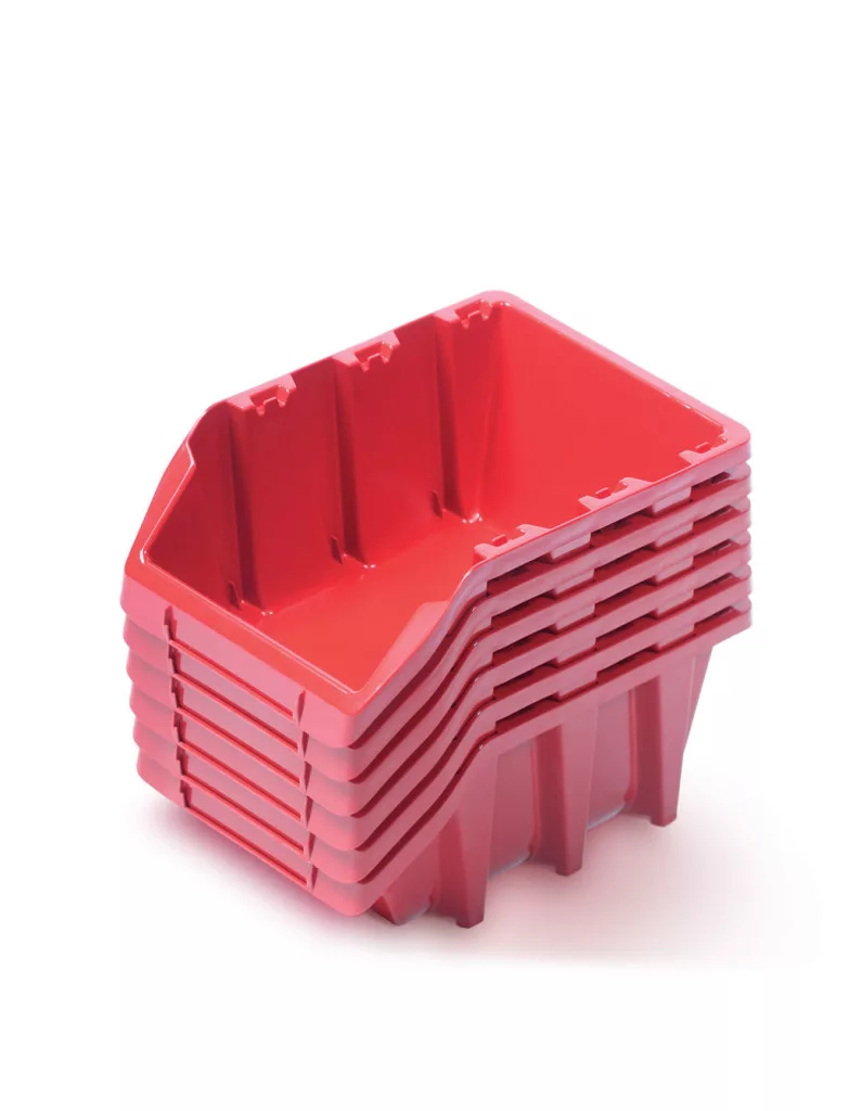 A tárolók praktikus kialakítása lehetővé teszi a címkézést és vonalkódok elhelyezését, így könnyedén nyomon követheti készleteit. A piros színű tárolóegységek nem csak esztétikusak, de kiváló láthatóságot is biztosítanak a műhelyben.