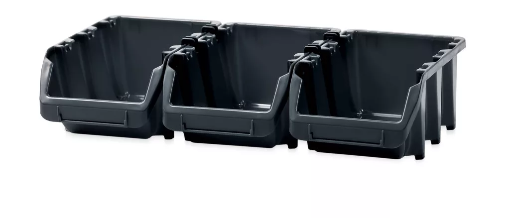 A dobozok falára címkék és vonalkódok helyezhetők el, valamint kompatibilisek a Bineer Board rendszerrel és szerelősínekkel. A fekete színű tárolódobozok kiváló minőségű anyagból készültek, így hosszú élettartamot biztosítanak mindennapi használat mellett is.