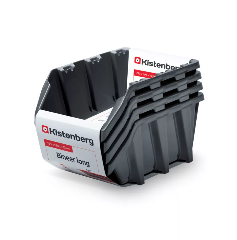 A Kistenberg Bineer Long 30 műhelyfiók készlet tökéletes megoldást nyújt a műhelyek és raktárak rendszerezett tárolási igényeire. A négy darabos szett tartós polimerből készült, így ellenáll a mindennapi használat során fellépő igénybevételnek. A fiókok innovatív kialakítása lehetővé teszi az egymásba építést és a függőleges tárolást.