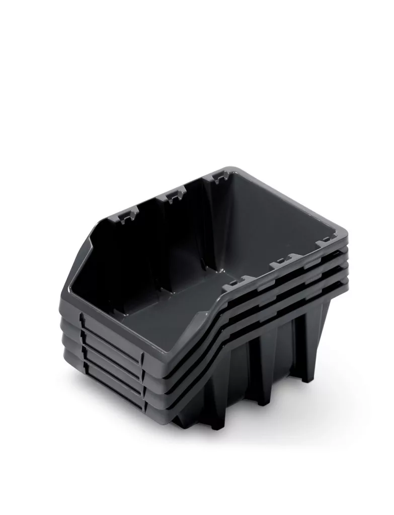 Praktikus 4 darabos műhelyfiók készlet, amely ideális alkatrészek és szerszámok rendszerezett tárolására. Egymásba építhető és falra szerelhető kivitel.