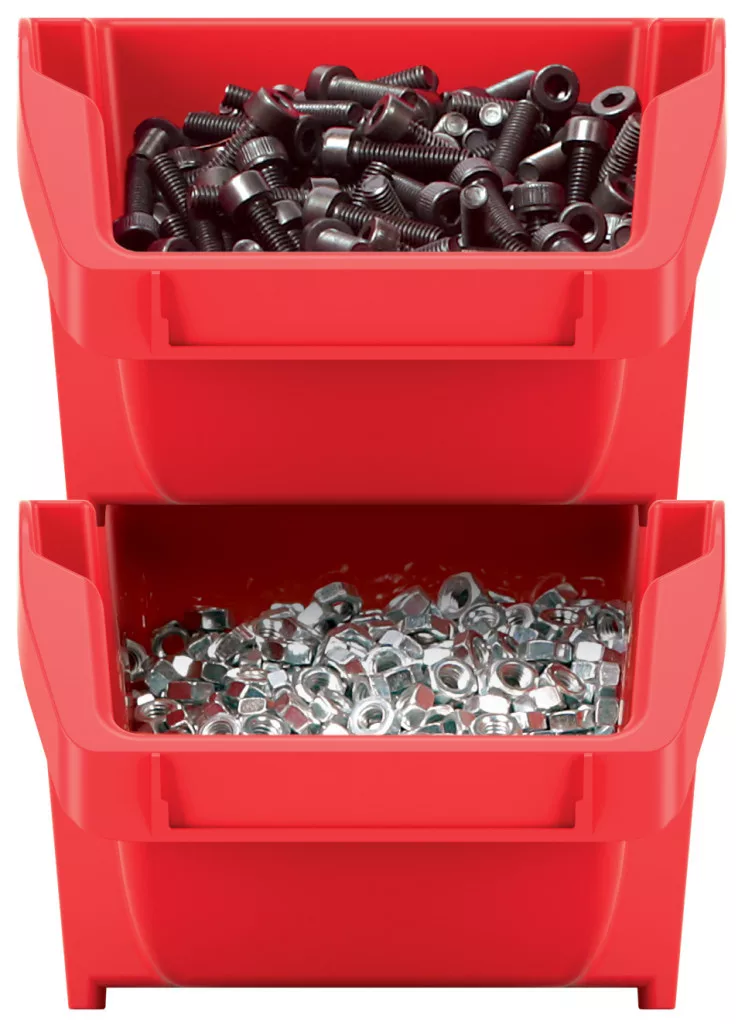 A praktikus kialakításnak köszönhetően a fiókok egymásra helyezhetők, így helytakarékos tárolást tesznek lehetővé. A fiók elején található címketartó segíti az alkatrészek gyors azonosítását.