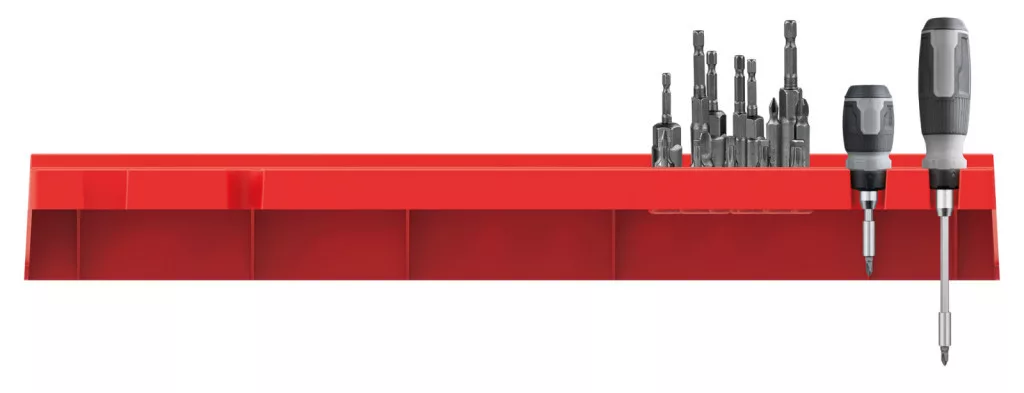 Praktikus, 2 darabos szerszámtartó polckészlet csavarhúzók, fúrók, bitek és egyéb kéziszerszámok rendszerezett tárolásához.