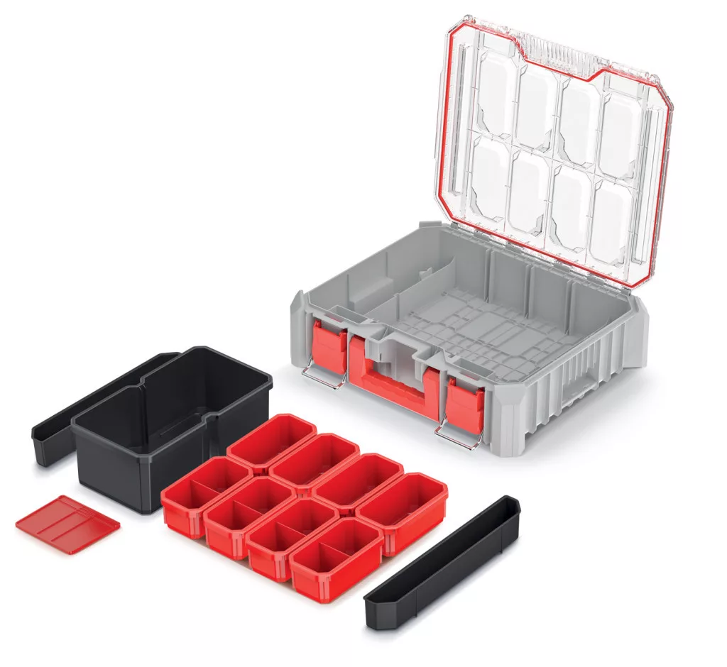 Prémium minőségű, moduláris szerszámrendező adapter 11 kivehető tárolórekesszel, por- és vízálló kialakítással, amely tökéletesen illeszkedik a C Block és X Block rendszerekhez.