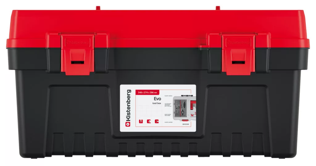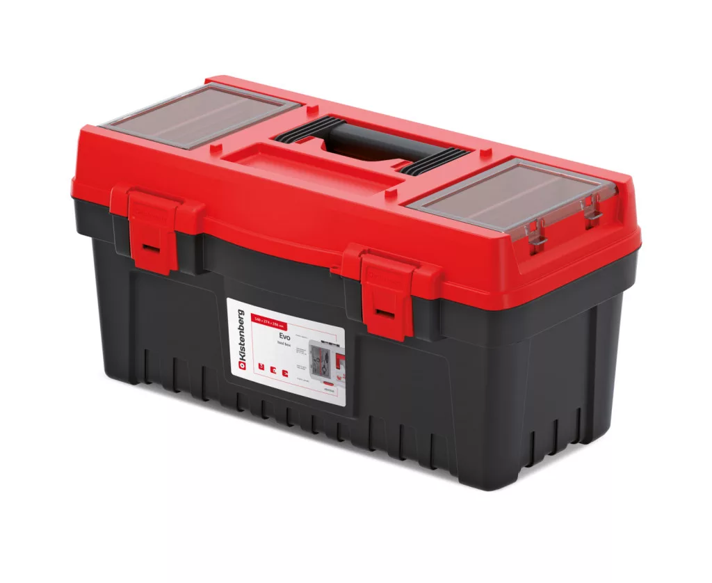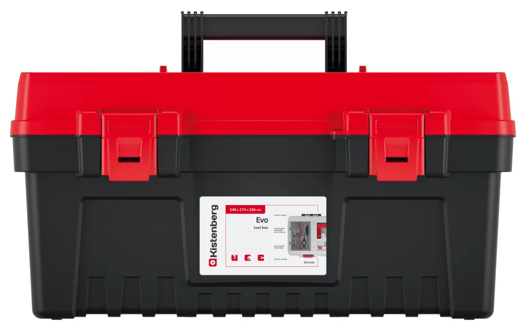 Az EVO 55 szerszámosláda a professzionális szerszámtárolás új szintjét képviseli. A polikarbonát fedéllel ellátott dupla szervező, valamint a kivehető elválasztók tökéletes rendszerezést biztosítanak. Az ergonomikus fogantyú és a strapabíró ABS csatok könnyű szállíthatóságot garantálnak.