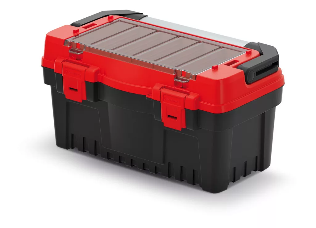 Strapabíró, sokoldalú szerszámosláda beépített szervezőrendszerrel és 12 kg teherbírással, ami ideális mind otthoni, mind professzionális használatra.
