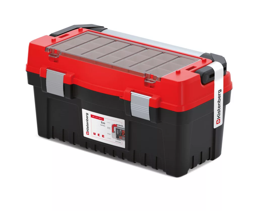 Az EVO 55 szerszámosláda ötvözi a praktikus tárolást és a professzionális funkcionalitást. A fedélben található nagy méretű szervező 11 kivehető rekesszel és átlátszó polikarbonát fedéllel rendelkezik, ami tökéletes a kisebb alkatrészek rendszerezéséhez. Az erős polimer szerkezet és az alumínium zárak tartósságot és megbízhatóságot garantálnak.