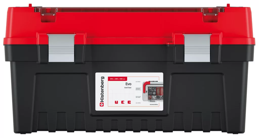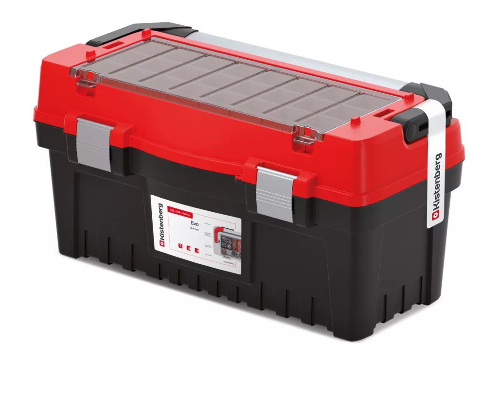 A Kistenberg EVO 60 szerszámosláda ötvözi a praktikus tárolást és a professzionális funkcionalitást. A hosszú alumínium fogantyú és a strapabíró polimer konstrukció maximális tartósságot biztosít. A fedélben található nagy szervező 11 kivehető rekesszel és átlátszó polikarbonát fedéllel rendelkezik a könnyű áttekinthetőség érdekében.