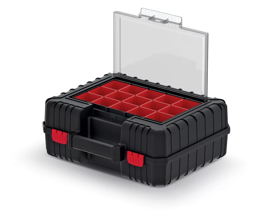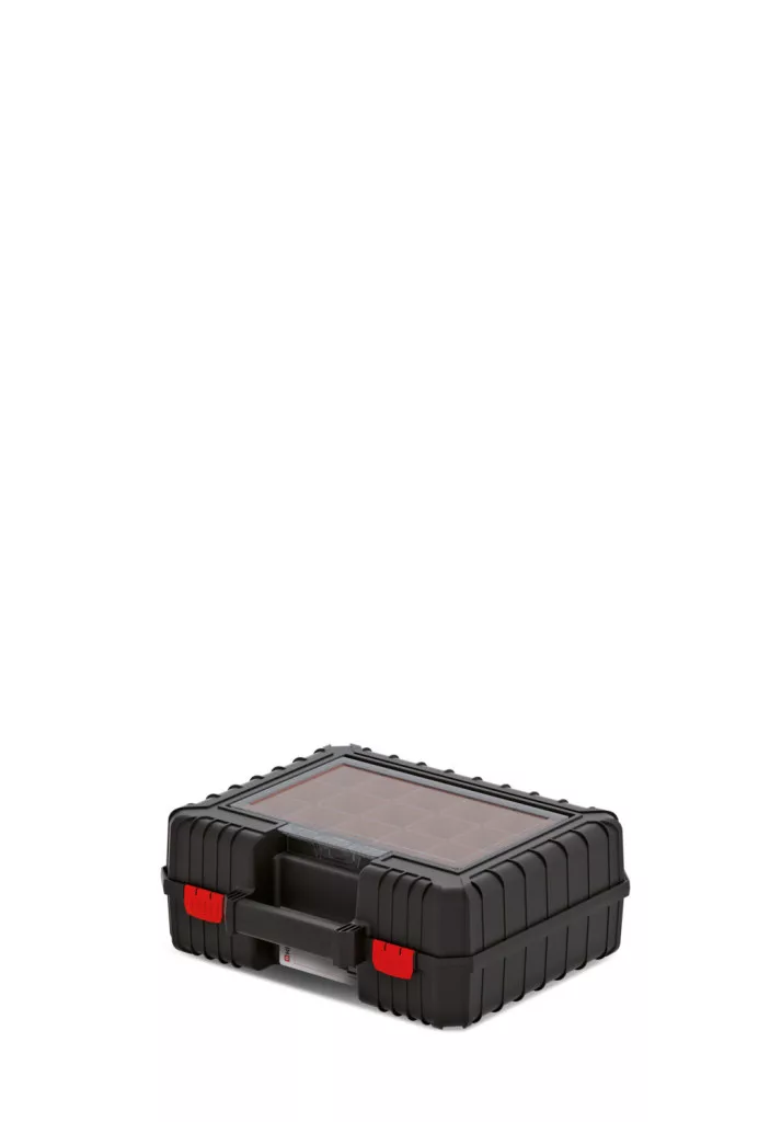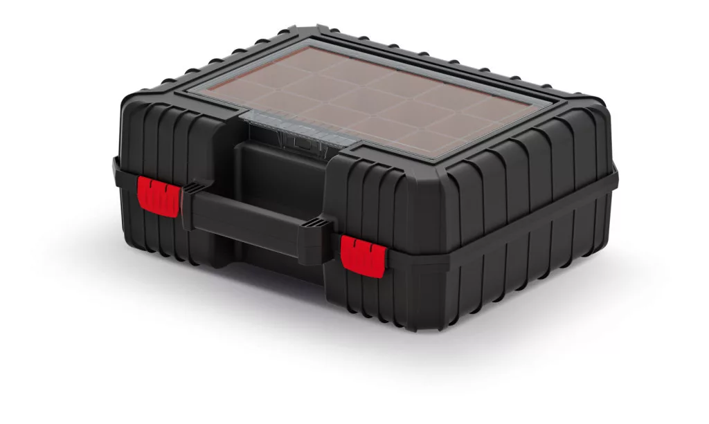 A Heavy 40 KHV40B szerszámkoffer a tartósság és funkcionalitás tökéletes ötvözete. A megerősített polimer háznak köszönhetően kivételesen ellenálló, míg az átlátszó polikarbonát fedéllel ellátott rendszerező tökéletes áttekinthetőséget biztosít.
