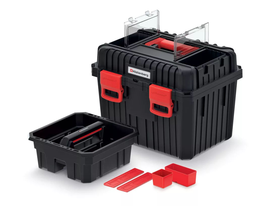 A Kistenberg Heavy KHV453535F szerszámosláda a tartósság és funkcionalitás tökéletes ötvözete. A megerősített polimer konstrukció és a kiváló minőségű ABS zárak garantálják a hosszú élettartamot, míg a beépített rendszerezők és átlátszó polikarbonát fedelek segítik a szerszámok rendszerezett tárolását.