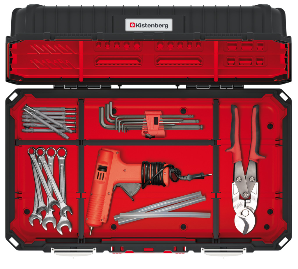 A Kistenberg Heavy 60 szerszámosláda a professzionális szerszámtárolás új szintjét képviseli. A megerősített polimer konstrukció és a kiváló minőségű ABS fogantyúk biztosítják a tartósságot, míg a beépített szerszámrendező és a 8 kivehető válaszfal tökéletes rendet teremt.