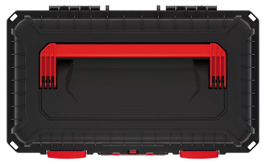 A kettős fogantyúrendszer - egy hosszú a fedélben és egy oldalsó a testen - könnyű hordozhatóságot biztosít, míg a tömítés véd a por és nedvesség ellen. A 25 kg-os teherbírás lehetővé teszi nehéz szerszámok biztonságos szállítását is.