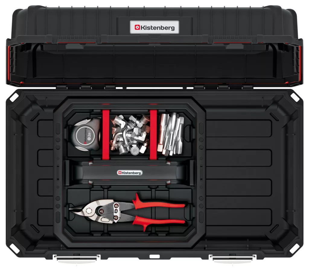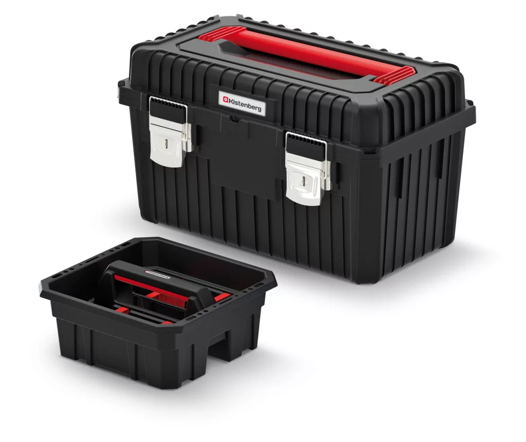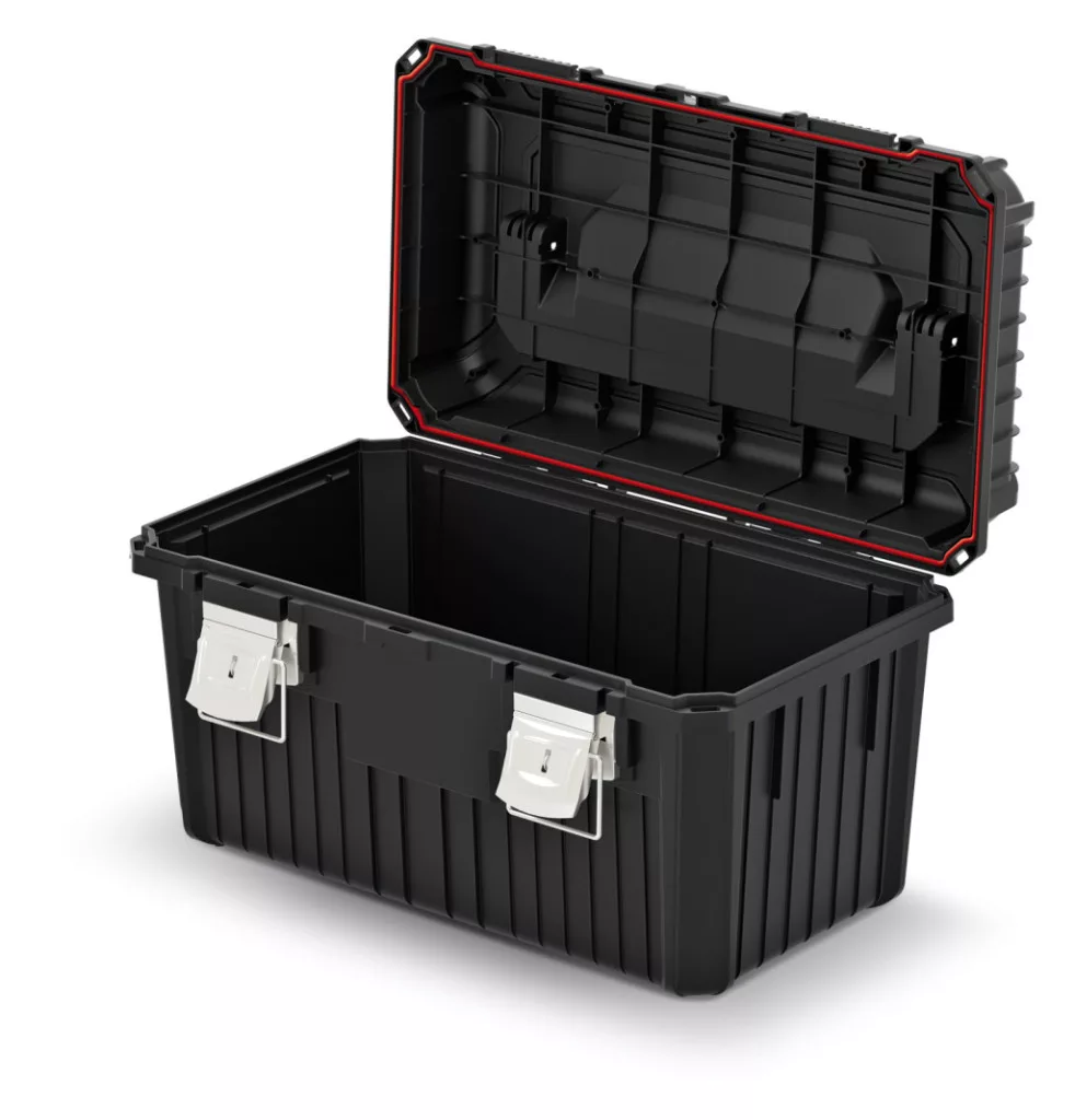 A kényelmes ABS fogantyú és a mély szerszámtartó rekesz praktikus használatot biztosít. A láda 25 kg teherbírása lehetővé teszi nehéz szerszámok és felszerelések biztonságos tárolását és szállítását.
