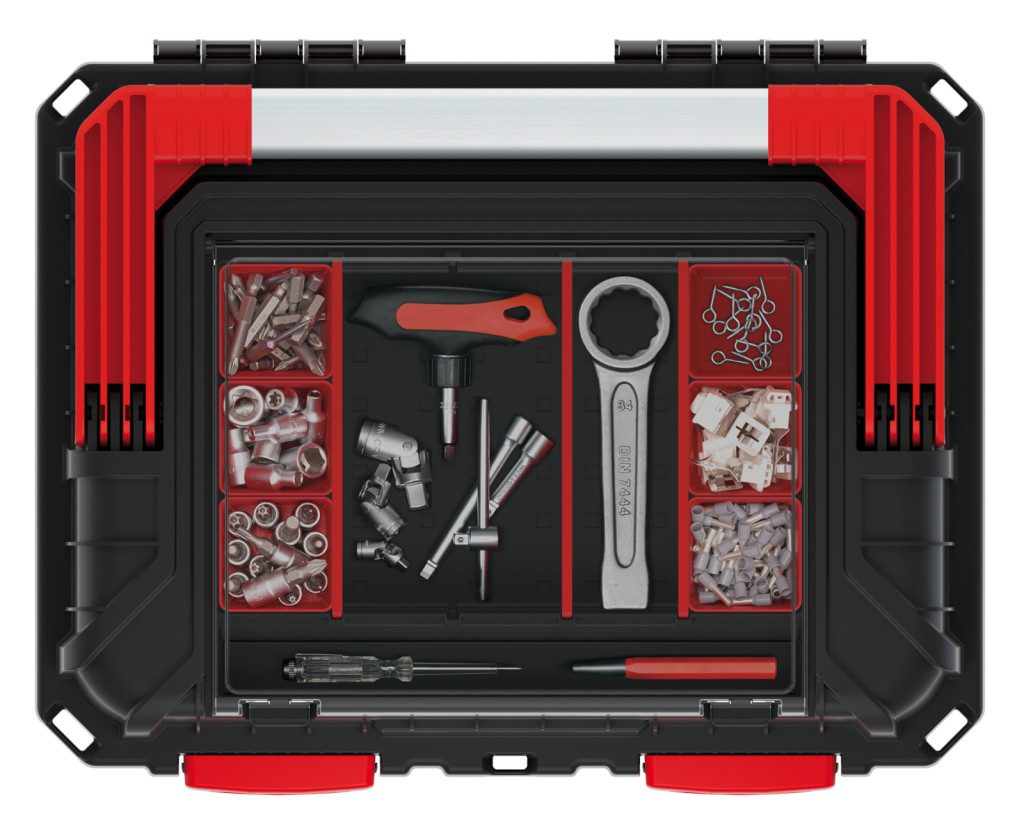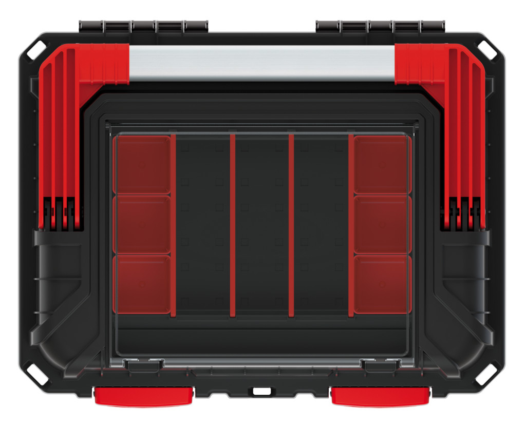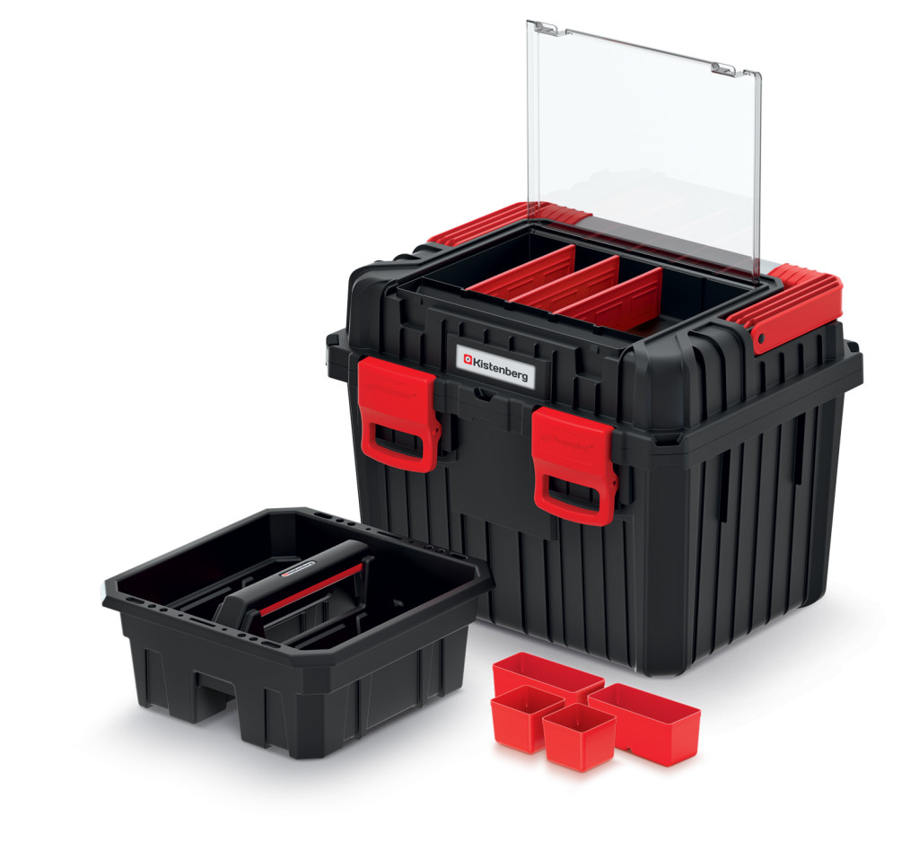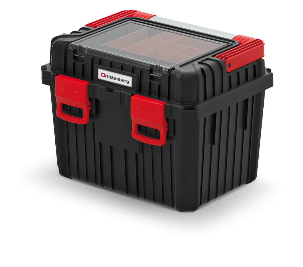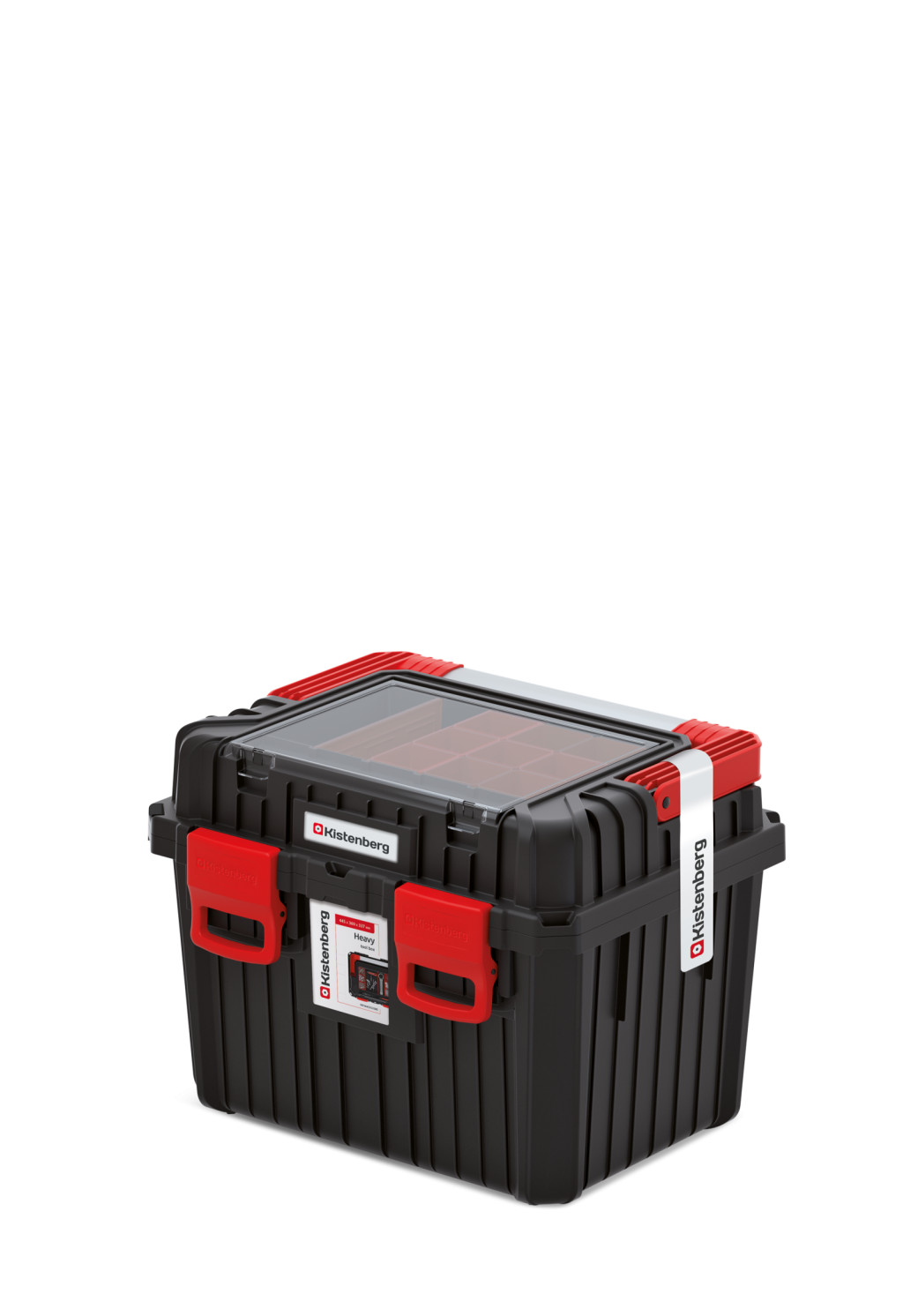 A Kistenberg Heavy 45 szerszámosláda a tartósság és funkcionalitás tökéletes ötvözete. A megerősített polimer konstrukció és az alumínium fogantyú biztosítja a maximális tartósságot, míg az átlátszó fedélbe épített rendszerező rekeszek és poharak segítik a kisebb alkatrészek szervezett tárolását.