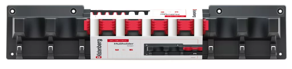 A Kistenberg MultiHolder 60 egy innovatív fali szerszámtartó rendszer, amely 4 nagyméretű és 5 rugalmas elasztomer tartóval rendelkezik. A megerősített polimer konstrukció stabil és tartós használatot biztosít, miközben a szerszámok biztonságosan és könnyen hozzáférhetően tárolhatók.