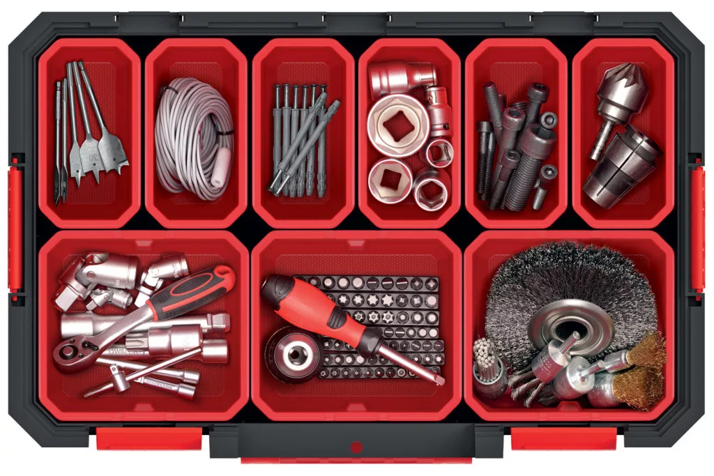 Modular Solution 15 Szerszámosláda Rendszerező 8 Kivehető Tárolóval Fekete-Piros