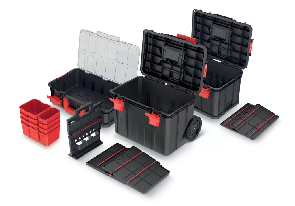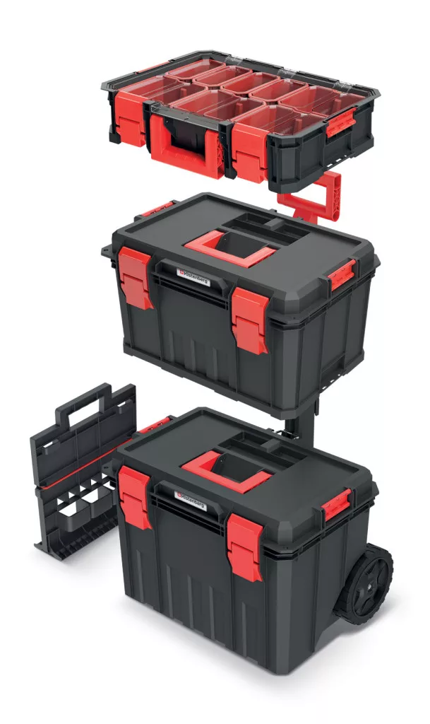 A rendszer különlegessége a moduláris felépítés, amely lehetővé teszi az egységek biztonságos összekapcsolását. Az ütésálló műanyagból készült tárolók ABS csatokkal és fém zsanérokkal rendelkeznek, valamint praktikus belső rendszerező elemekkel segítik a szerszámok és alkatrészek átlátható tárolását.