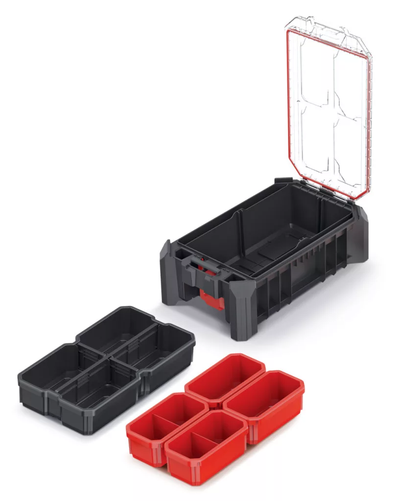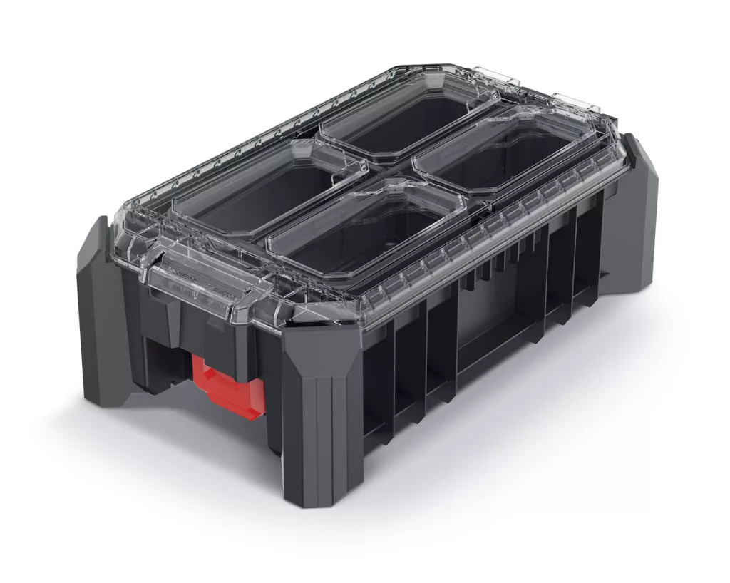 A rendező 3 kivehető elválasztóval és 5 praktikus tárolórekesszel rendelkezik, amelyek testre szabható tárolóteret biztosítanak. A fém zsanérok és az ergonomikus fogantyú hosszú élettartamot és kényelmes használatot garantálnak.