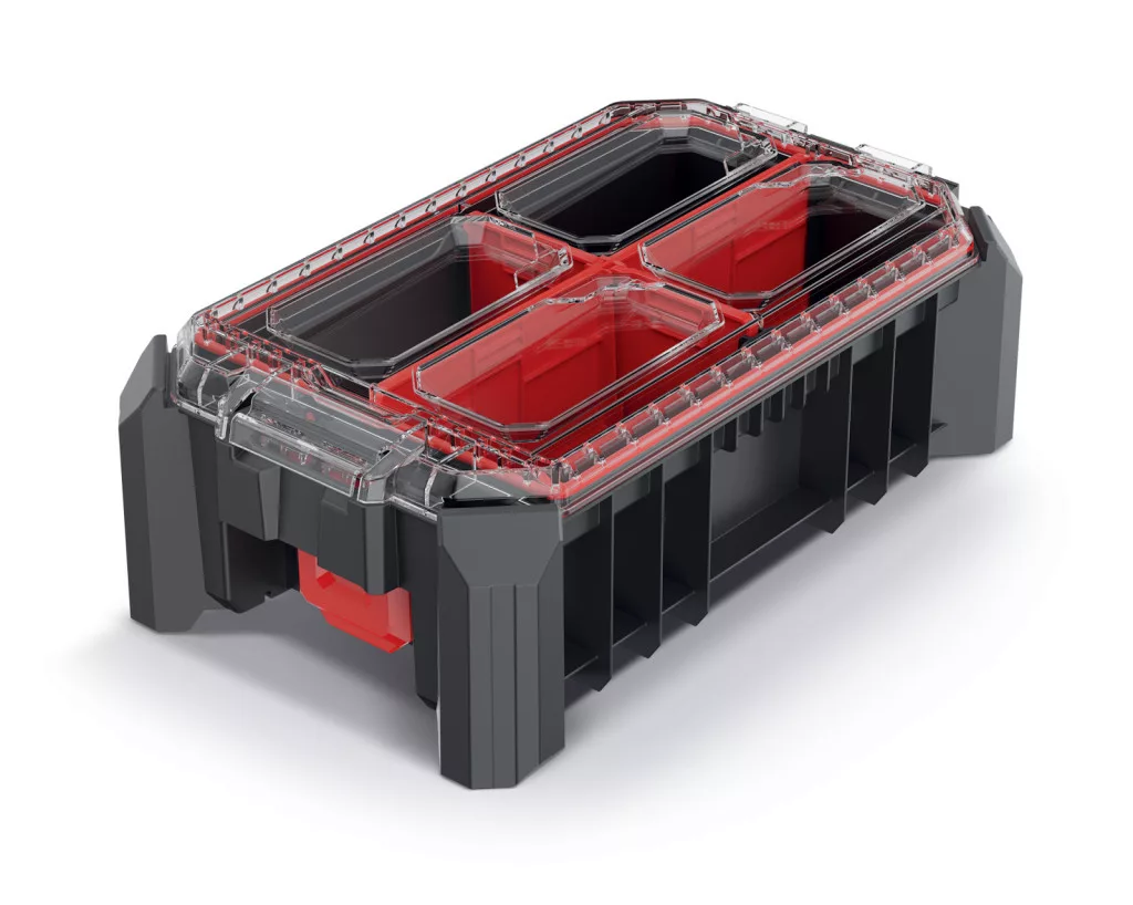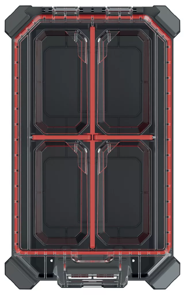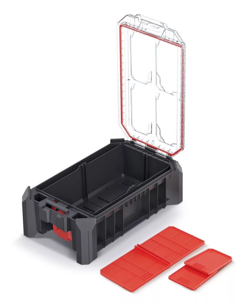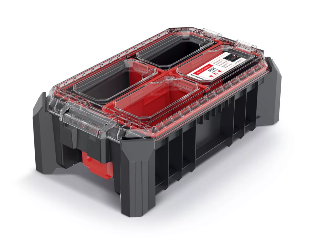 A MSX 25 magas szerszámrendező egy innovatív tárolómegoldás, amely ötvözi a tartósságot és a praktikusságot. A megerősített polimer házszerkezet és a polikarbonát fedél maximális védelmet nyújt a szerszámoknak, míg a három kivehető válaszfal rugalmas térkihasználást tesz lehetővé.