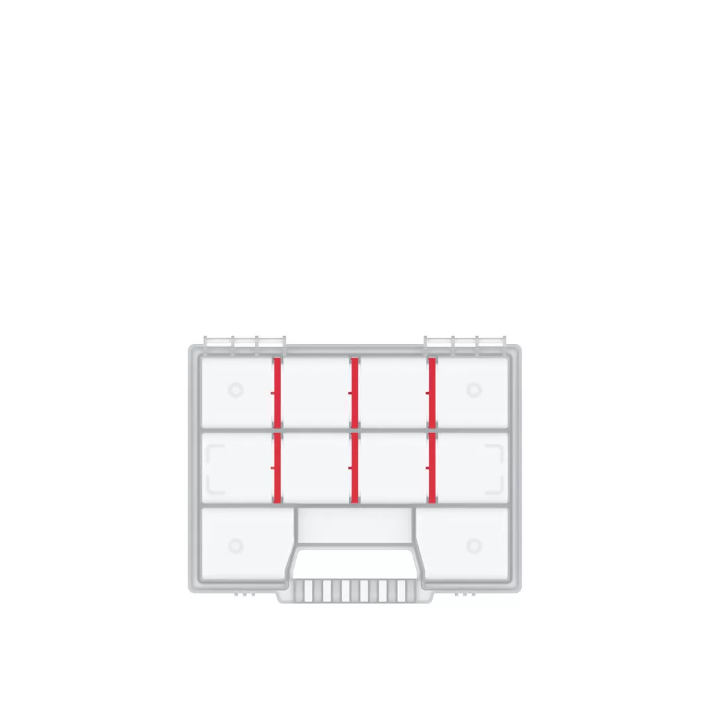 A Nort 20 szerszámrendező tökéletes megoldást kínál a kisebb szerszámok, alkatrészek és tartozékok rendszerezett tárolására. Az átlátszó polipropilén konstrukció azonnal láthatóvá teszi a tárolt elemeket, míg a 6 kivehető rekesz maximális rugalmasságot biztosít a belső tér felosztásában.