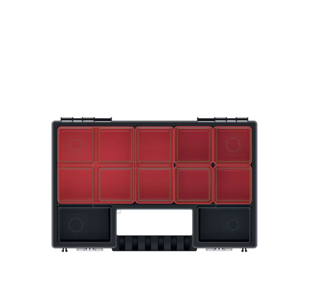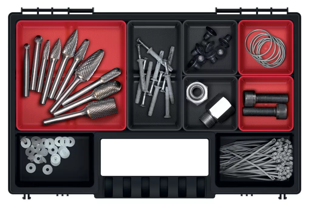 A Norb 30 szerszámrendező egy innovatív tárolási megoldás, amely tökéletes rendet teremt a műhelyben vagy otthon. A praktikus kialakítású tároló 10 kivehető rekesszel rendelkezik, amelyek piros színnel vannak kiemelve a jobb átláthatóság érdekében.
