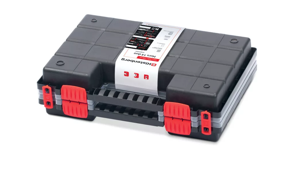 A NORS DUO 35 egy innovatív dupla szerszámrendező rendszer, amely két összekapcsolt tárolóegységből áll. Az átlátszó polipropilén fedél azonnali rálátást biztosít a tárolt eszközökre, míg a strapabíró polimer ház garantálja a hosszú élettartamot.