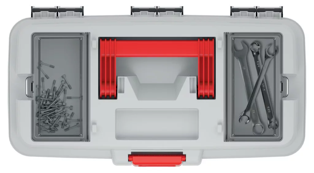 A strapabíró polimer háznak és az ABS zárszerkezetnek köszönhetően a szerszámosláda tartós és megbízható társ a mindennapi munkában. A beépített bittartó és a 9 kg-os teherbírás tovább növeli a láda praktikusságát.