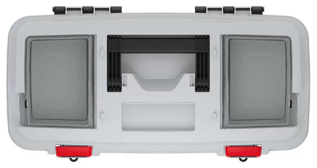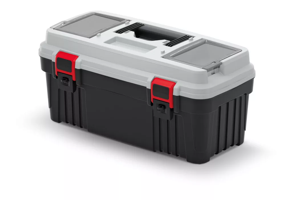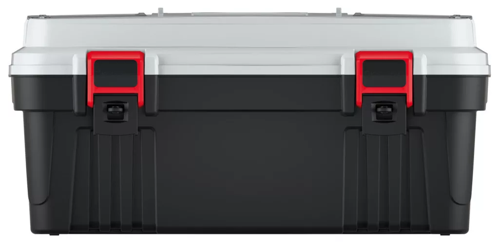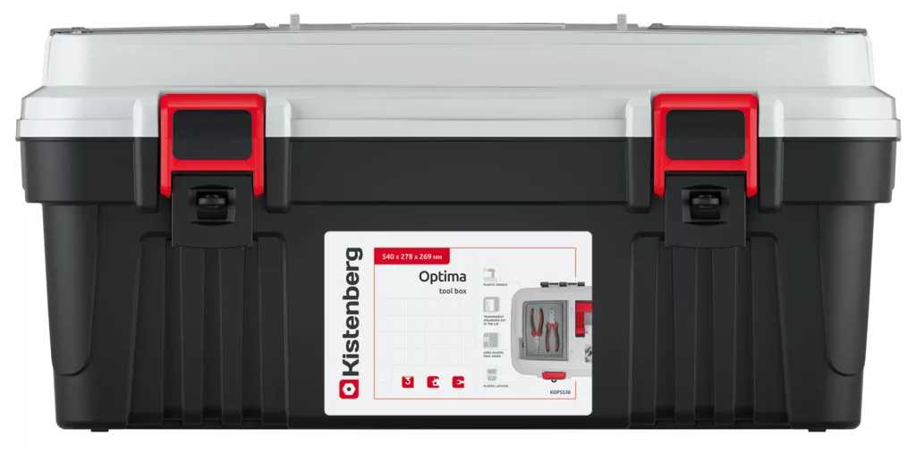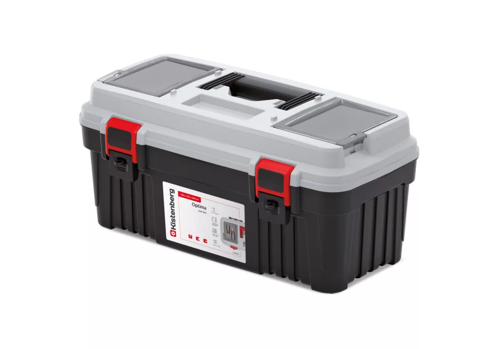 Az Optima 55 szerszámosláda a modern szakember igényeire szabott tárolómegoldás. A fedélben található két átlátszó polikarbonát rendszerező tökéletes a kisebb alkatrészek, csavarok és bitek tárolására, míg a masszív főtér bőséges helyet biztosít a nagyobb szerszámoknak.