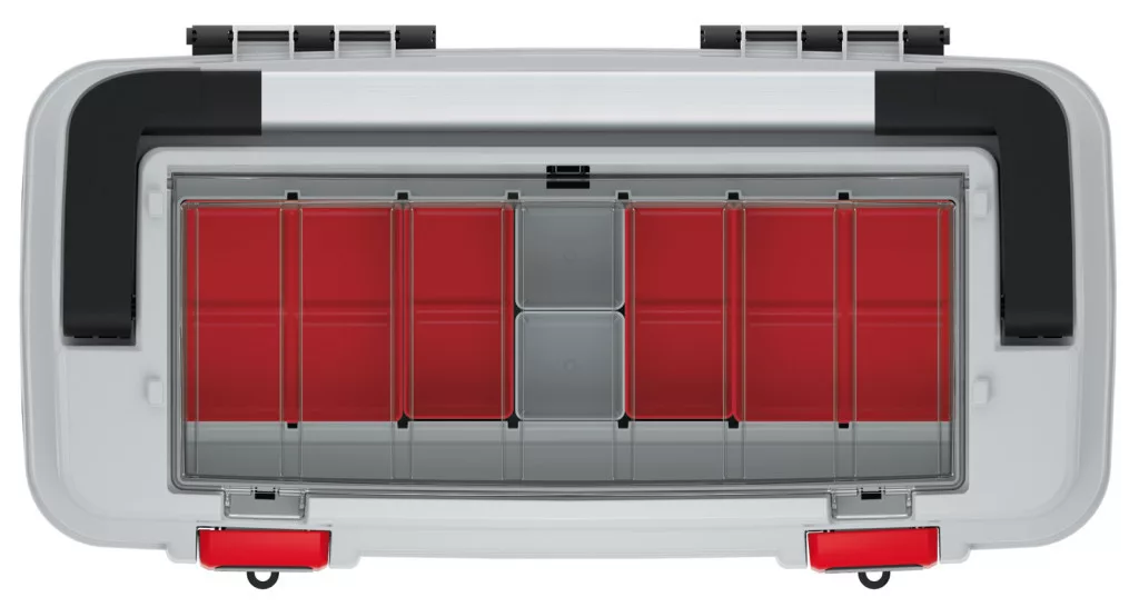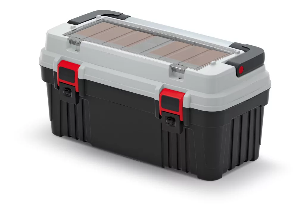 Az Optima 55 szerszámosláda ötvözi a praktikusságot és a tartósságot. A nagy méretű tárolótér mellett rendelkezik egy beépített szervezőrendszerrel a fedélben, amely 6 kivehető tárolórekesszel és hosszú szerszámok tárolására alkalmas résszel van felszerelve. Az átlátszó polikarbonát fedél könnyű áttekinthetőséget biztosít.