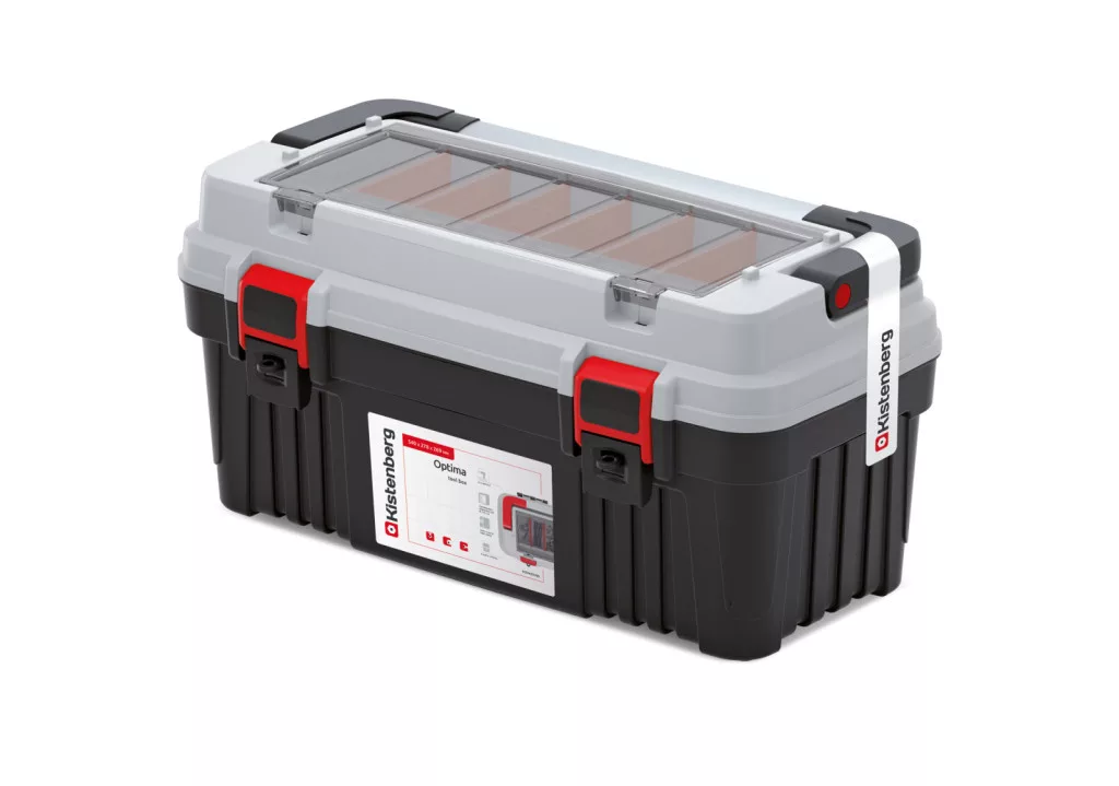 Az Optima 55 szerszámosláda a professzionális szerszámtárolás új szintjét képviseli. A masszív polimer konstrukció és az alumínium fogantyú tökéletes kombinációja maximális tartósságot és praktikusságot biztosít. A beépített rendszerező rekeszekkel és a hosszú szerszámok tárolására alkalmas speciális rekesszel minden eszköz könnyen áttekinthető és elérhető marad.