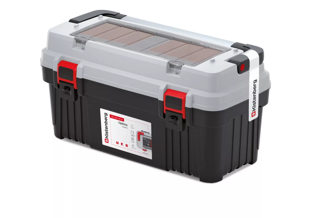 Az Optima 60 szerszámosláda ötvözi a praktikumot és a tartósságot. A nagy teherbírású polimer házban található egy beépített szervező rendszer 6 kivehető tárolórekesszel és egy speciális hosszú szerszámtartó résszel. Az átlátszó polikarbonát fedél azonnal áttekinthetővé teszi a tárolt eszközöket.