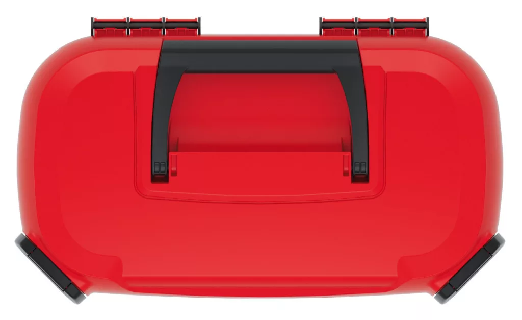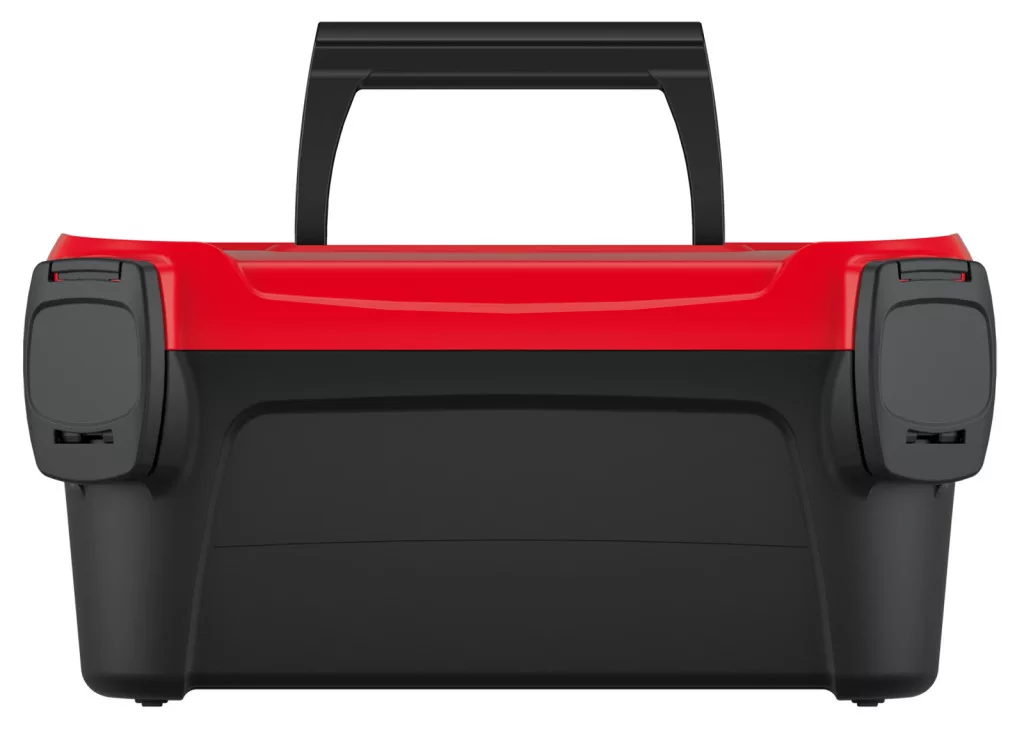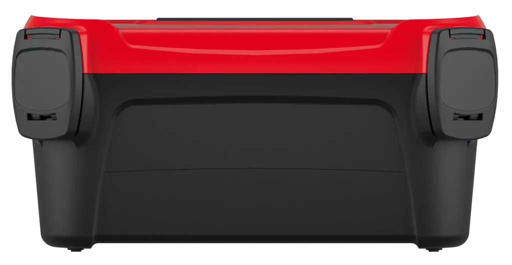 A szerszámosláda praktikus kialakítása lehetővé teszi a szerszámok rendszerezett tárolását, külön rekesszel a bitek számára. A piros-fekete színkombináció nem csak esztétikus, de a műhelyben is könnyen felismerhető.