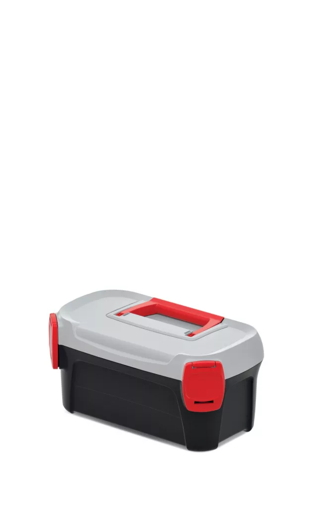 Kompakt és strapabíró szerszámosláda ergonomikus fogantyúval és 6 kg teherbírással, ideális otthoni és professzionális használatra.