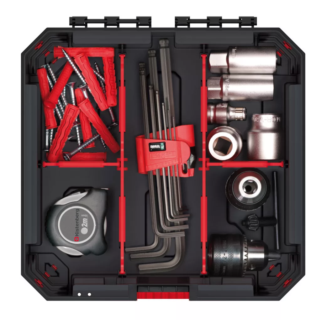 A Titan 30 szerszámrendező ötvözi a praktikusságot és a tartósságot. A megerősített polimer házszerkezet és az ütésálló polikarbonát fedél maximális védelmet nyújt a szerszámoknak, míg az 5 kivehető rekesz tökéletes rendszerezést biztosít.