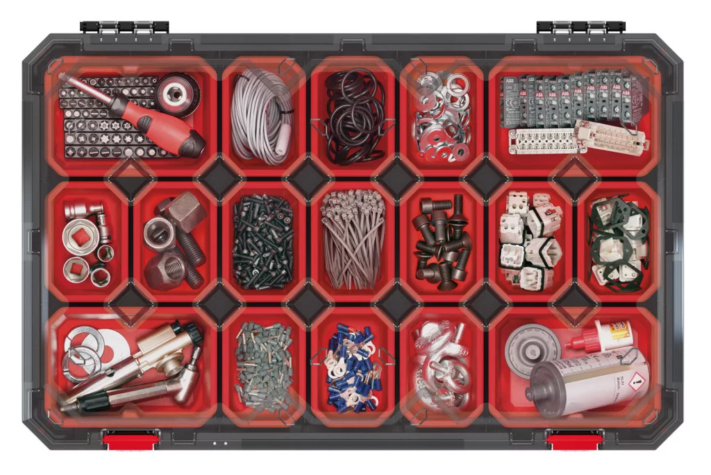 A Titan 60 szerszámrendező egy innovatív tárolórendszer, amely ötvözi a praktikusságot és a tartósságot. A 15 kivehető tárolórekesz tökéletes rugalmasságot biztosít különböző méretű szerszámok, csavarok és alkatrészek rendszerezett tárolásához. Az átlátszó polikarbonát fedél azonnali áttekinthetőséget garantál a tárolt eszközökről.